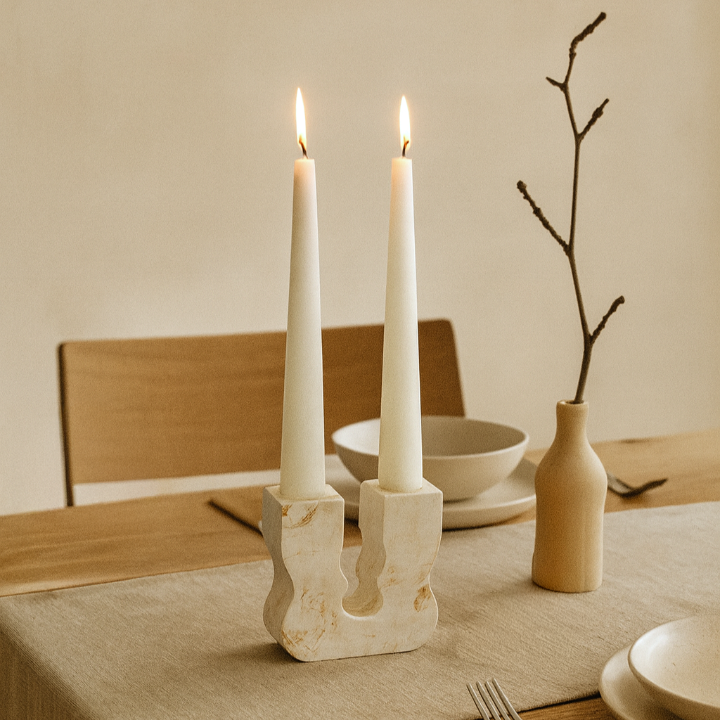 - Verwendung: Für Stabkerzen (ca. 2.2 cm Durchmesser) oder als minimalistisches Statement-Piece